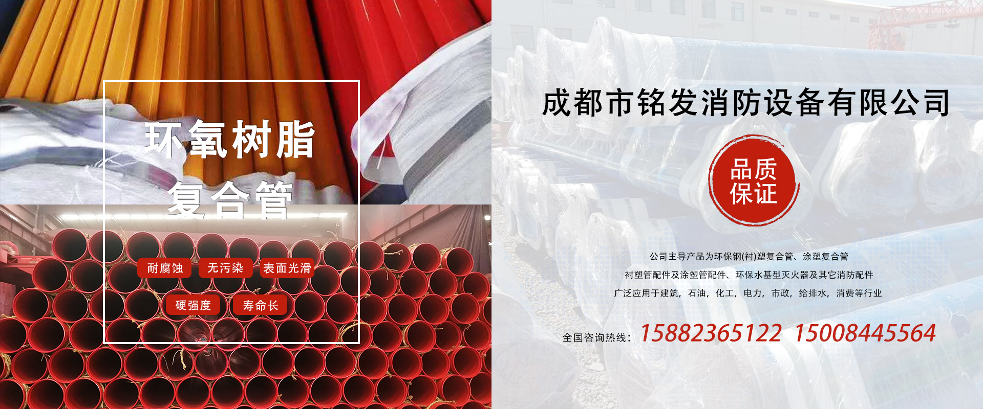 成都市銘發消防設備有限公司主導產品為環保鋼(襯)塑復合管、涂塑復合管、襯塑管配件及涂塑管配件、環保水基型滅火器及其它消防配件。廣泛應用于建筑、石油、化工、電力、市政、給排水、消防等行業。...